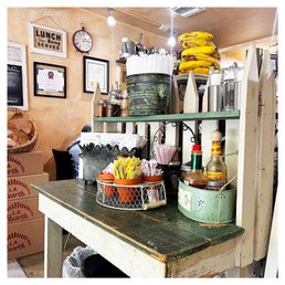 What a sweet, little cafe! We stopped at the Tesla charger and decided to take a walk to get a bite for breakfast. We had a yummy bowl of steel cut oatmeal with raisins, nuts, cinnamon along with a yummy plate of fresh fruit. Looking at the menu they have a good assortment of soups and sandwiches. I bet their soups are fantastic. It is obvious the owner cares very much about fresh ingredients and quality food. We highly recommend stopping in if you are in the area.