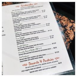 My first visit to Lily's Cafe confirmed all the positive experiences in other reviews. They have a menu with varied options, homemade soups and pastries, and Lily herself who was so welcoming and kind. It's apparent that she and her staff use quality ingredients prepared with great care. Can't wait to return and order more of their unique (loved the potato salad!) and delicious items!